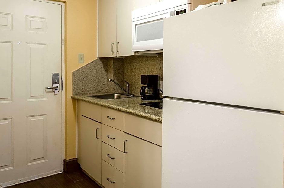 This room features a microwave, refrigerator, and coffee-making facilities.